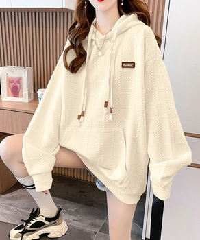 体型カバートップス レディース ゆったり 長袖プルオーバー おしゃれ 型押しロング丈スウェット カジュアル大人可愛い春秋エンボス加工お洒落 アメカジスウェット フロントポケット服