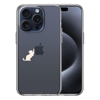 iPhone15Pro ケース クリア 猫 リンゴ キャッチ ホワイト スマホケース 側面ソフト 背面ハード ハイブリッド 送料無料