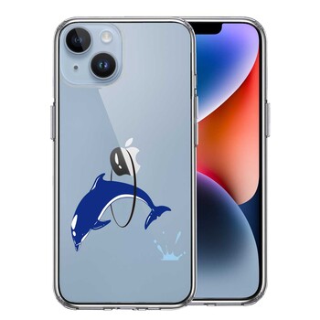 iPhone14Plus ケース クリア ドルフィン イルカ 輪くぐり スマホケース 側面ソフト 背面ハード ハイブリッド 送料無料