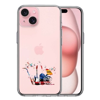 iPhone15Plus ケース クリア 楽器 たち スマホケース 側面ソフト 背面ハード ハイブリッド