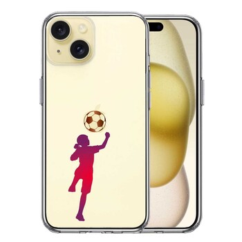 iPhone15Plus ケース クリア サッカー ヘディング 女子 スマホケース 側面ソフト 背面ハード ハイブリッド 送料無料