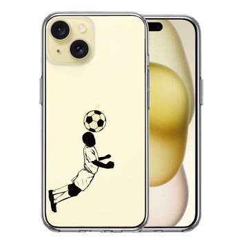 iPhone15 ケース クリア サッカー ヘディング 男子 黒 スマホケース 側面ソフト 背面ハード ハイブリッド