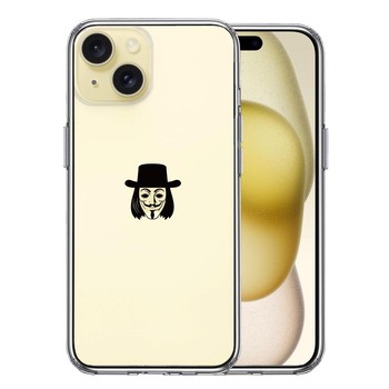 iPhone15Plus ケース クリア Anonymous アノニマス マーク スマホケース 側面ソフト 背面ハード ハイブリッド