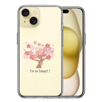 iPhone15 ケース クリア HAPPY TREE 幸せの木 桜 スマホケース 側面ソフト 背面ハード ハイブリッド 送料無料