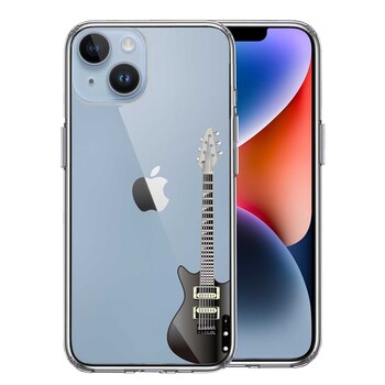 iPhone15Plus ケース クリア エレキギター 黒 スマホケース 側面ソフト 背面ハード ハイブリッド