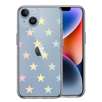 iPhone14Plus ケース クリア 星 スター パステル レインボー スマホケース 側面ソフト 背面ハード ハイブリッド