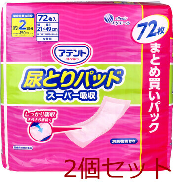 アテント 尿とりパッドスーパー吸収 女性用 約2回吸収 72