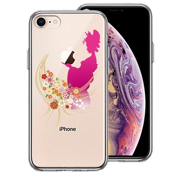 iPhone8 ケース クリア 日本女性 着物少女 スマホケース 側面ソフト 背面ハード ハイブリッド 送料無料