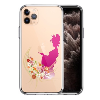 iPhone11pro ケース クリア 日本女性 着物少女 スマホケース 側面ソフト 背面ハード ハイブリッド 送料無料
