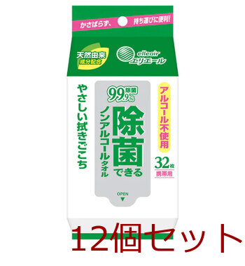 エリエール 除菌できるノンアルコールタオル 携帯用 32枚入 12セット 送料無料