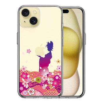iPhone15Plus ケース クリア 日本女性 着物少女 青紫 スマホケース 側面ソフト 背面ハード ハイブリッド 送料無料