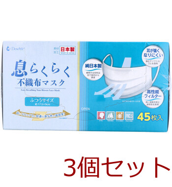 マスク デュウエアー 息らくらく不織布マスク ふつうサイズ 45枚入 3セット 送料無料