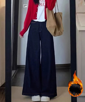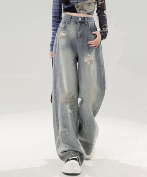レトロ風ジーンズ ハイウエスト ウォッシュデニム 美脚脚長 セミワイドパンツ フルレングス 着やせジーパン 体型カバーユーズド加工デニム 10代20代30代 カジュアルジーンズ
