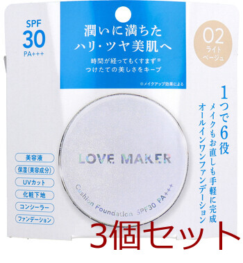LOVE MAKER クッションファンデーション 02 ライトベージュ 15g 3個セット 送料無料