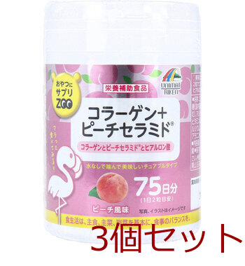 おやつにサプリZOO コラーゲン+ピーチセラミド 75日分 150粒 3個セット 送料無料
