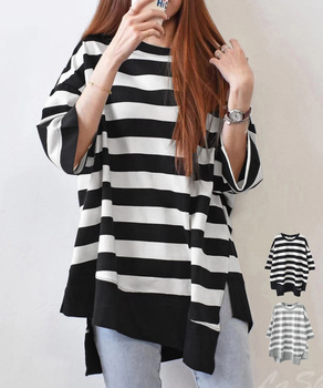 大人の方でも着やすい太ピッチのボーダー柄チュニック丈Tシャツです。