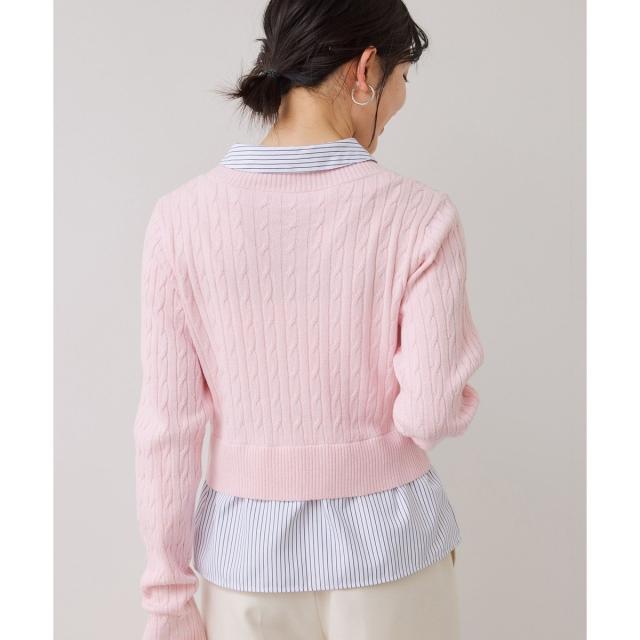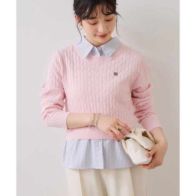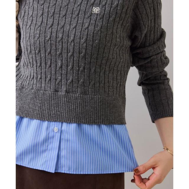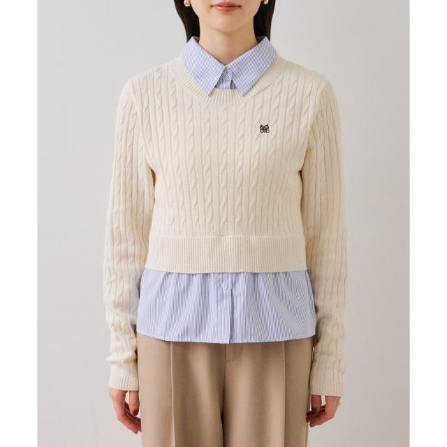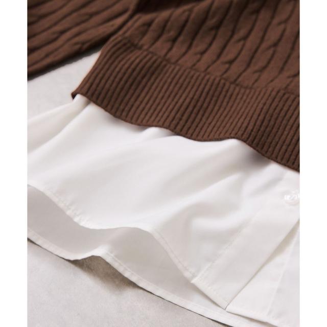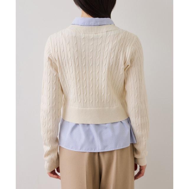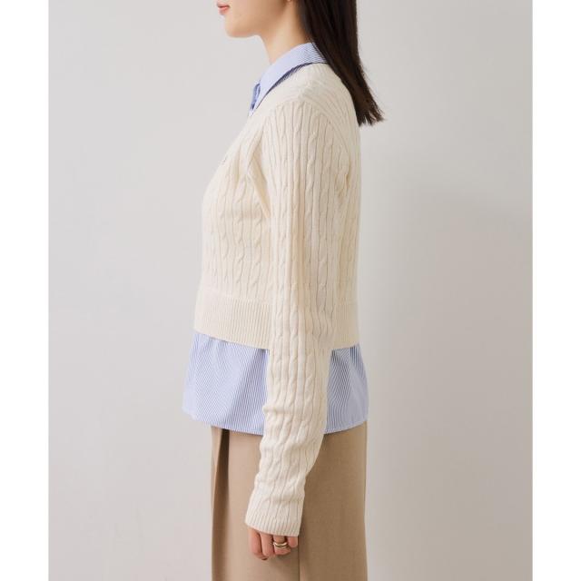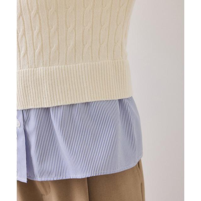ニット部分はすっきり細めのケーブル編み。シャツをレイヤードしているようなドッキング仕立てです。