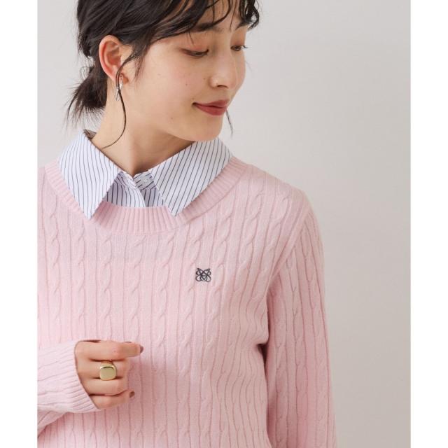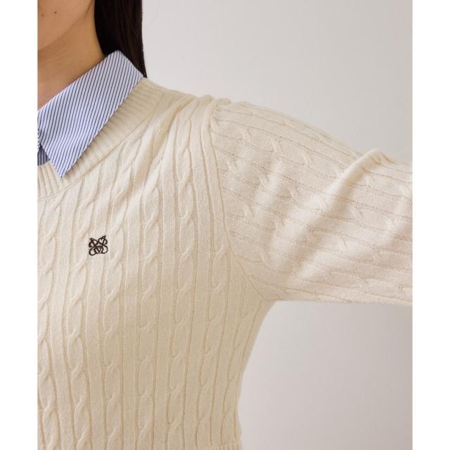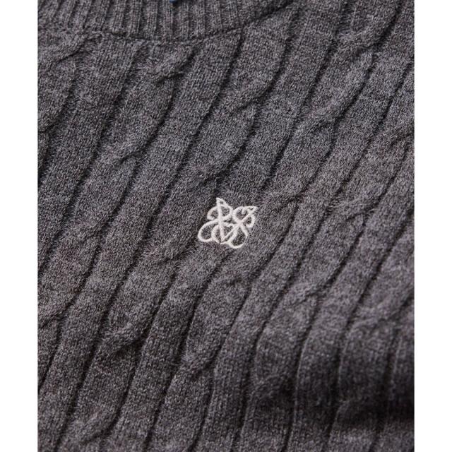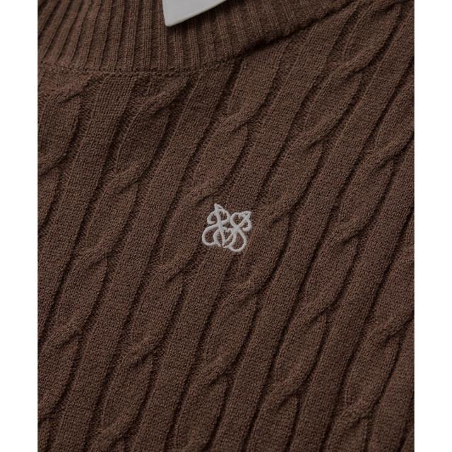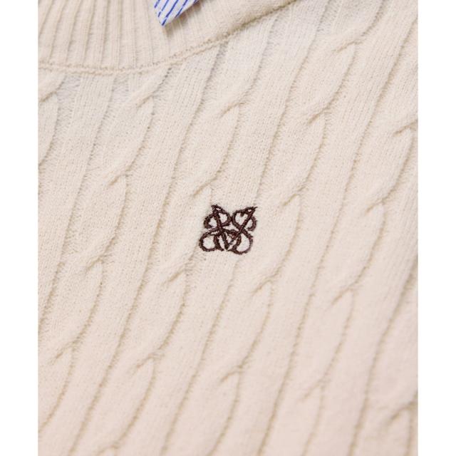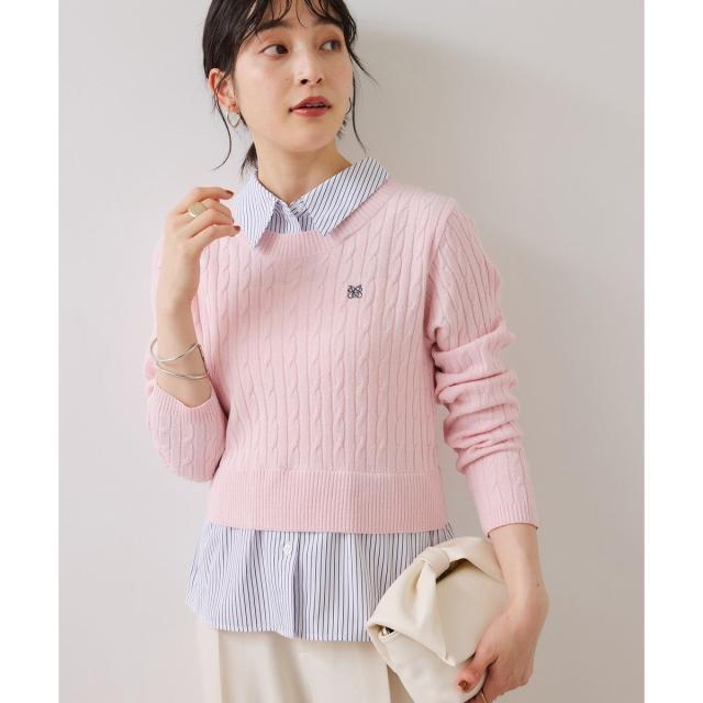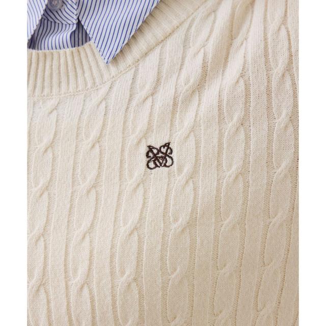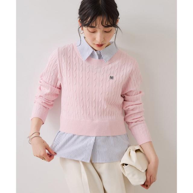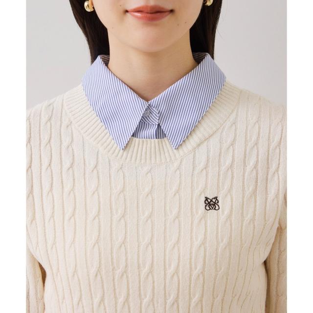 ニット部分はすっきり細めのケーブル編み。シャツをレイヤードしているようなドッキング仕立てです。