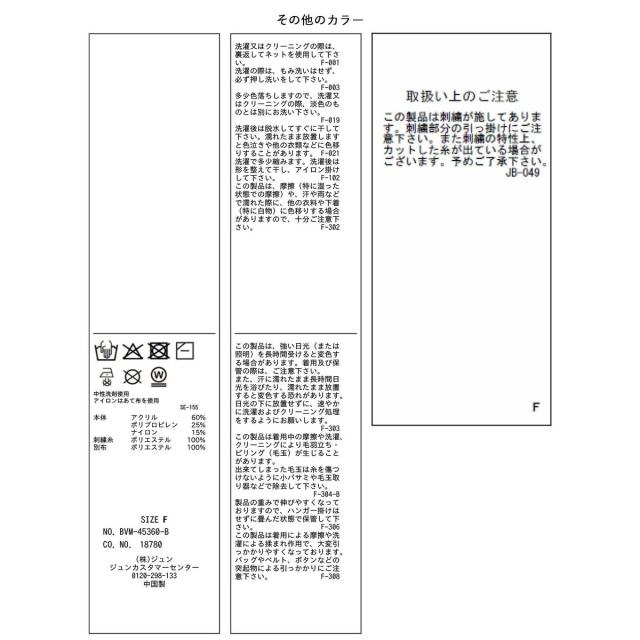 その他のカラー:(本体) アクリル 86% ナイロン 14% (刺繍糸) ポリエステル 100% (別布) ポリエステル 100%
