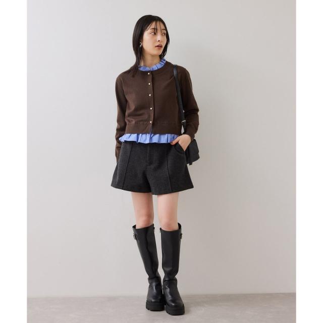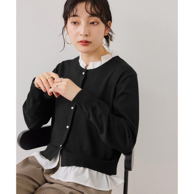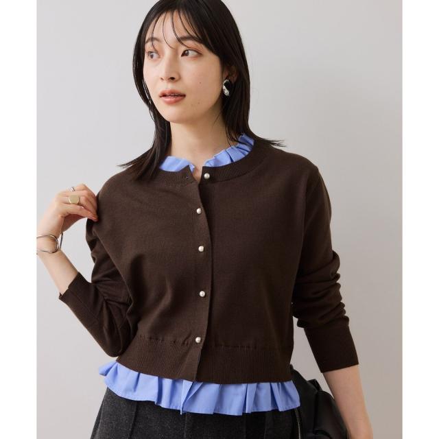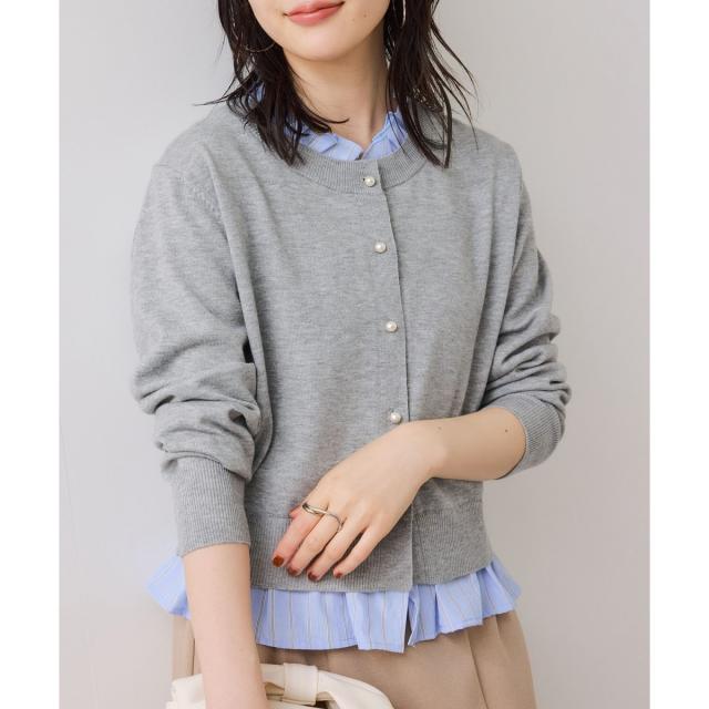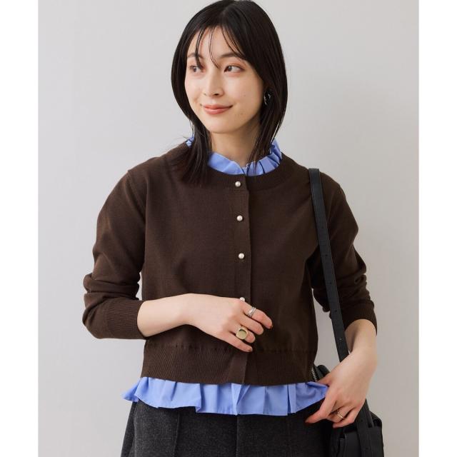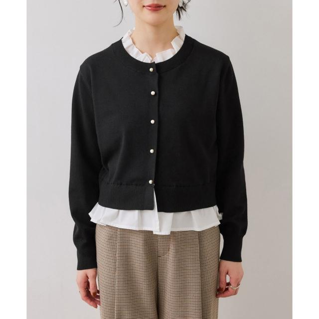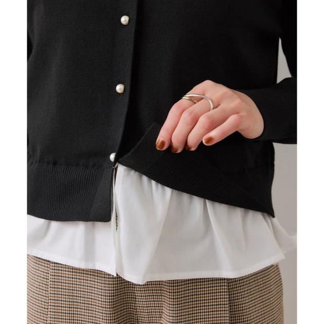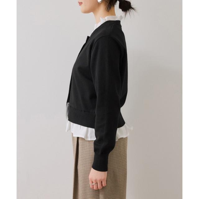 ビス(VIS)/フリル襟ドッキングニットカーディガントップス