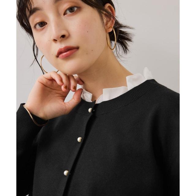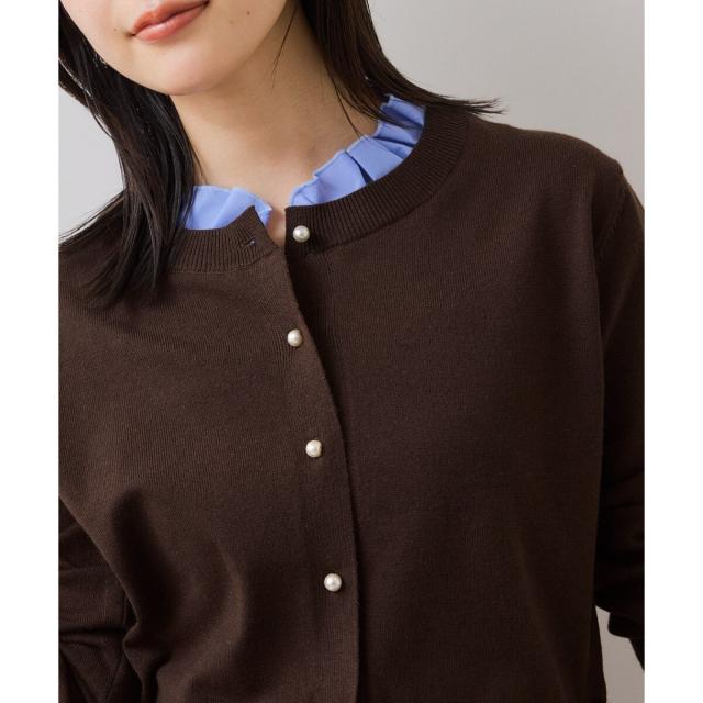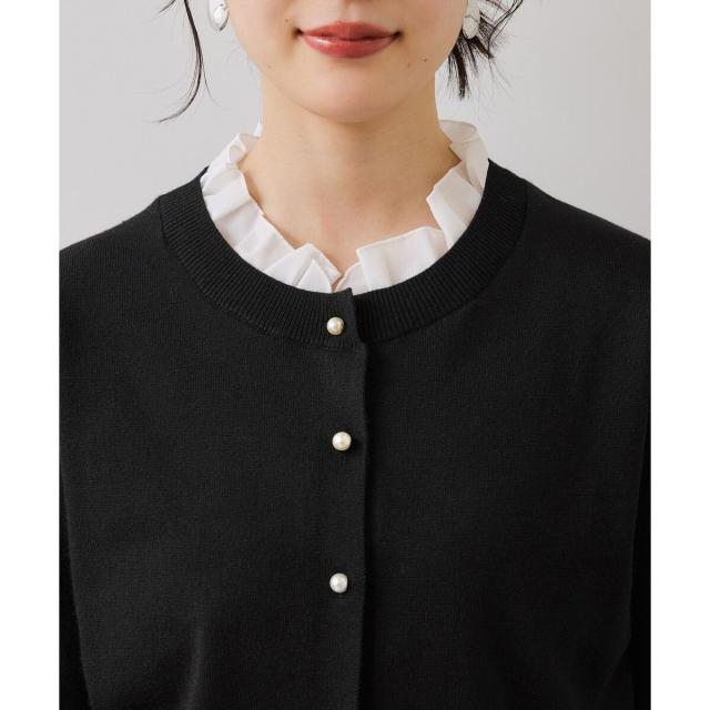 ネックは華やかな印象のフリルネック。釦をパールにし、春が楽しみになるような華やかなデザインになっています。