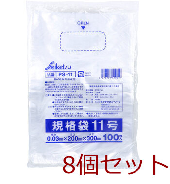 PS 11 規格袋 透明 11号 0.03×200×300mm 100枚入 8セット 送料無料
