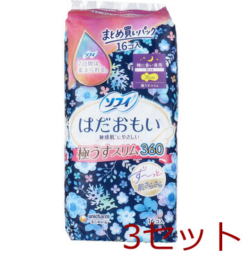 ソフィ はだおもい 極うすスリム 特に多い夜用 羽つき 36cm 16個入 3セット 送料無料