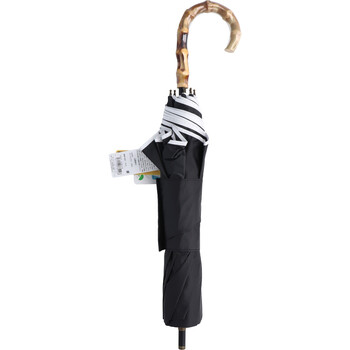 晴雨兼用ショートワイド傘 竹手元 裏黒コーティング マリンボーダー ブラック 送料無料