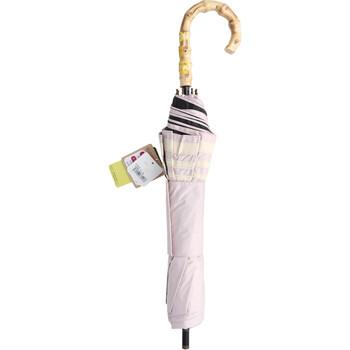 晴雨兼用ショートワイド傘 竹手元 裏黒コーティング マリンボーダー ピンク 送料無料