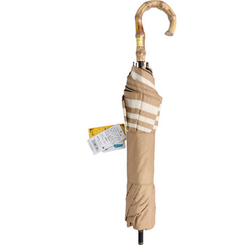 晴雨兼用ショートワイド傘 竹手元 裏黒コーティング マリンボーダー オフホワイト 送料無料