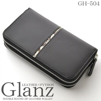 長財布Glanz牛革×蛇革ダブルファスナー長財布 GH-50