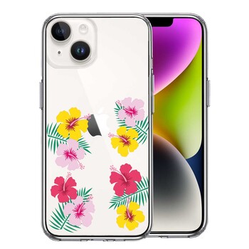 iPhone14Plus ケース クリア ハワイ 花 フラワー フローラル 花柄 スマホケース 側面ソフト 背面ハード ハイブリッド