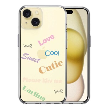 iPhone15 ケース クリア Love sweet hug cutie 文字 デザイン スマホケース 側面ソフト 背面ハード ハイブリッド 送料無料