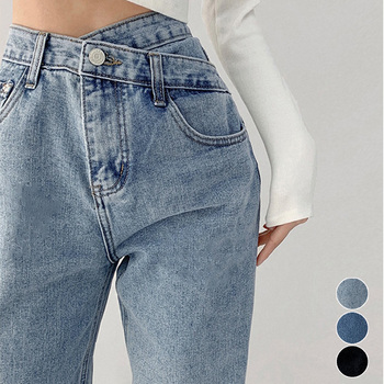 ハイウエストデニムパンツ ウエストボタン