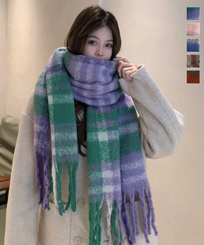 フリンジマフラー チェック柄 秋冬