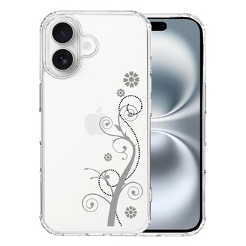 iPhone16 ケース クリア フローラル つる模様 グレ
