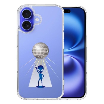 iPhone16 ケース クリア 宇宙人 ダンシング ミラーボール スマホケース 側面ソフト 背面ハード ハイブリッド 送料無料