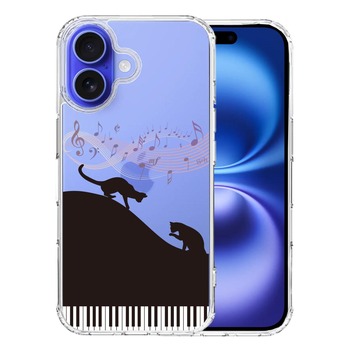 iPhone16 ケース クリア ピアノ シルエット猫 ブラ