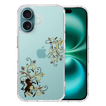 iPhone16 ケース クリア フローラル ユニコーン ブラウン スマホケース 側面ソフト 背面ハード ハイブリッド 送料無料