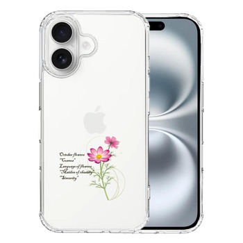 iPhone16 ケース クリア 一輪花 10月 コスモス