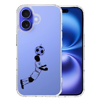 iPhone16 ケース クリア サッカー ヘディング 男子 黒 スマホケース 側面ソフト 背面ハード ハイブリッド 送料無料