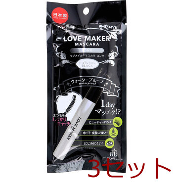 LOVE MAKER ラブメーカー マスカラ ロング ウォータープルーフ ナチュラルブラック 1本入 3セット 送料無料