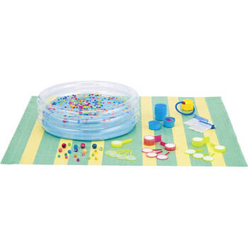 スーパーボール×300、使い捨てすくい枠×100、持ち帰り用袋×100、丸型透明プール:φ80cm×1、フットポンプ×1、カップ×10、レジャーシート:2畳用(180×180cm)×1
