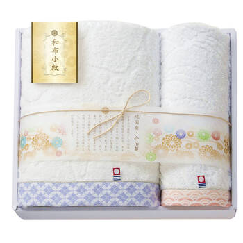 ・小紋柄とラメのラインでさりげなく彩られたシンプルなタオル。
