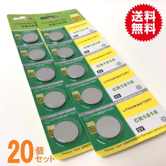 ボタン電池(CR1616)20個セット 【送料無料 PDA カメラ リチウム電池 置時計 置き時計 電子手帳 LEDライト リングライト バングルライト 防災グッズ 非常用 災害 腕時計用リチウム電池】