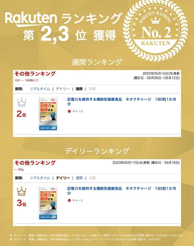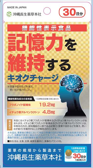 記憶力を維持する機能性健康食品 キオクチャージ 180粒1か月分