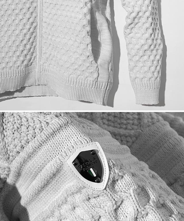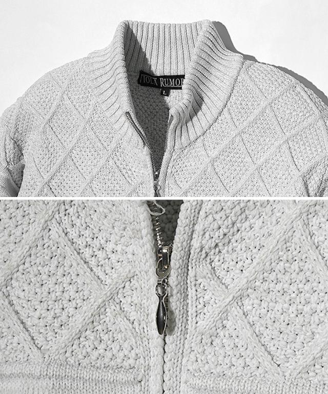 【ケーブル編みコンビフルジップスタンドニット】■Design/デザイン