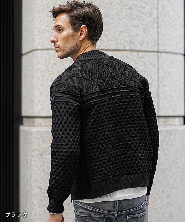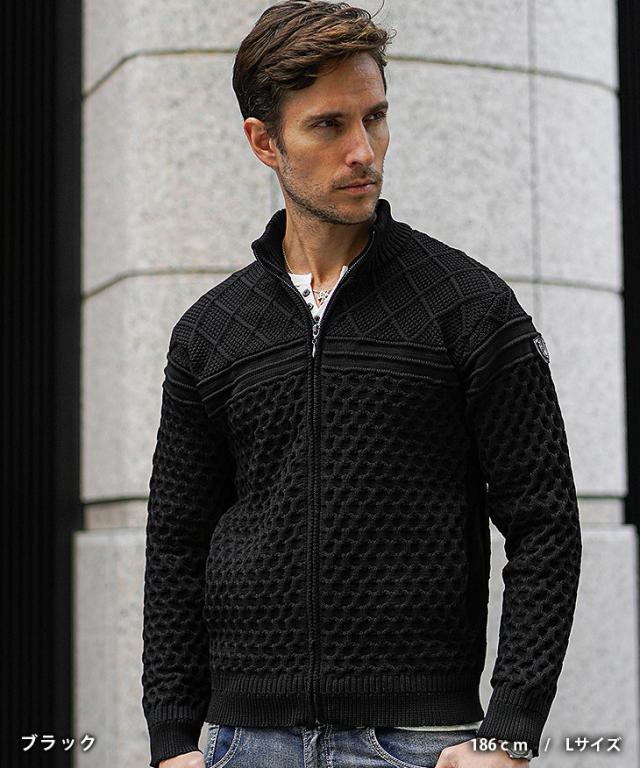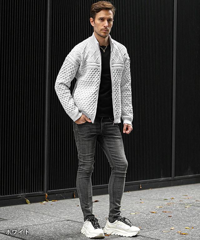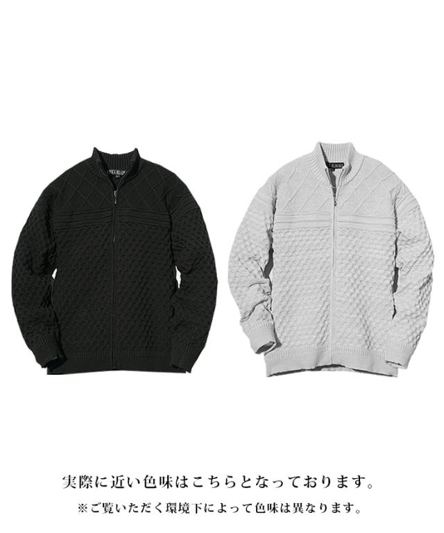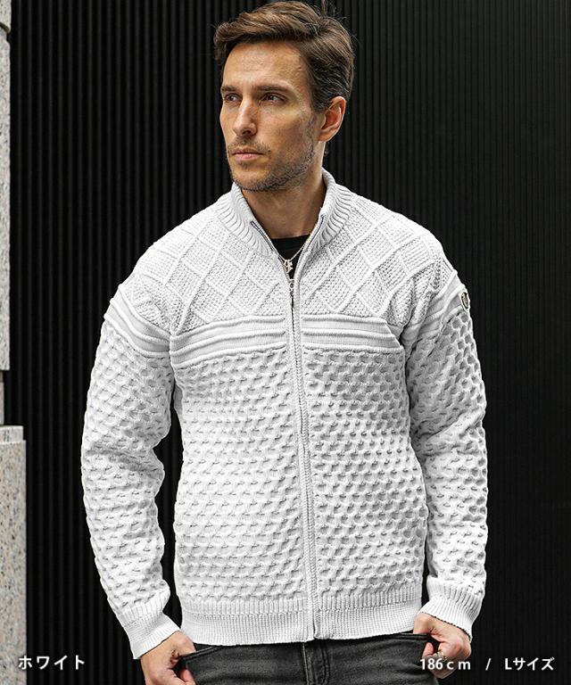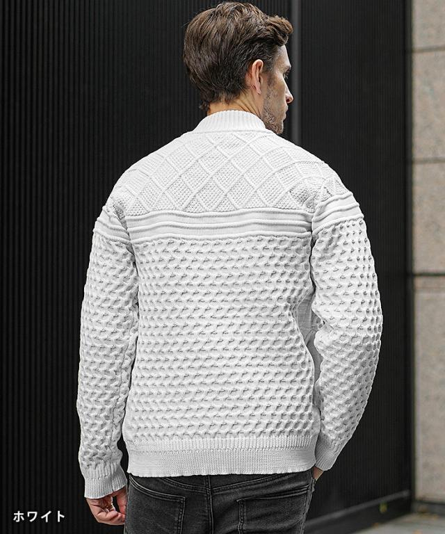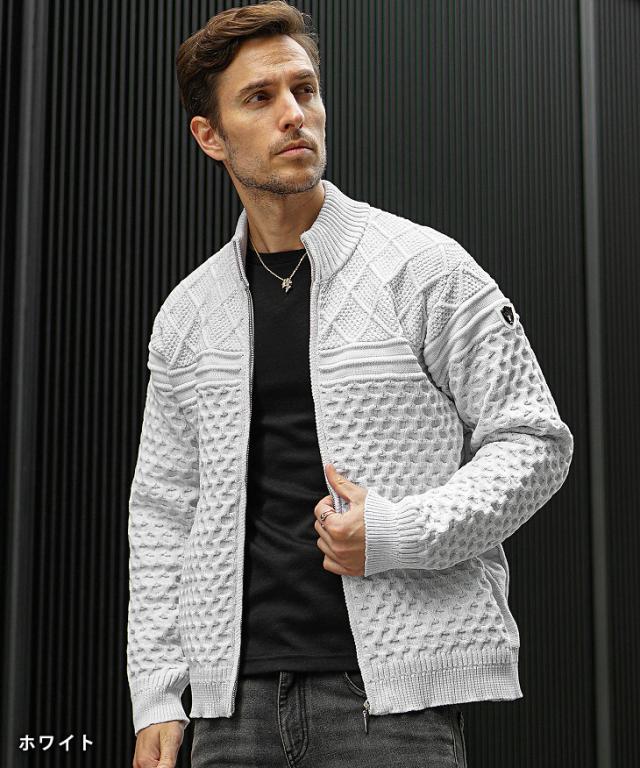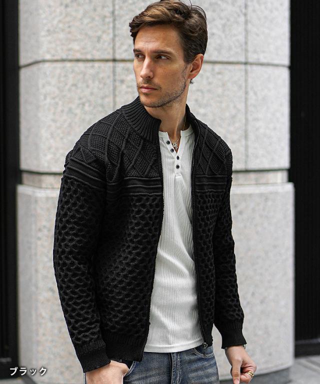 VIOLA rumore ヴィオラ ニットジャケット メンズ ブランド 総柄 セーター おしゃれ スタンドカラー ニット ジップブルゾン 肉厚 黒 白 きれいめ 秋 秋服 秋物 秋冬 メンズファッション ちょいワル オラオラ系 Y62125