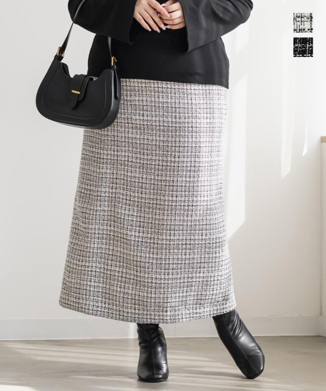 大きいサイズ/レディース/3L/4L/タック入りツイードナロースカート
