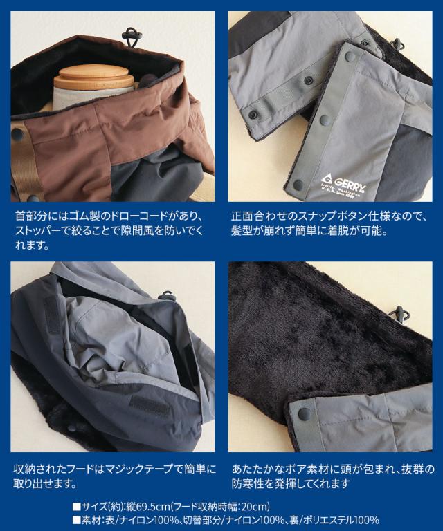 gerry フードウォーマー メンズ レディース 2way ネックウォーマー もこもこ 裏起毛 フリース 撥水 男性 女性 秋 冬 防寒 あったか 首元 アウトドア スキー スノーボード ネックウェア 黒 ブラック グレー ダークブラウン ロゴ ジェリー 2wayフードネックウォーマー n1285